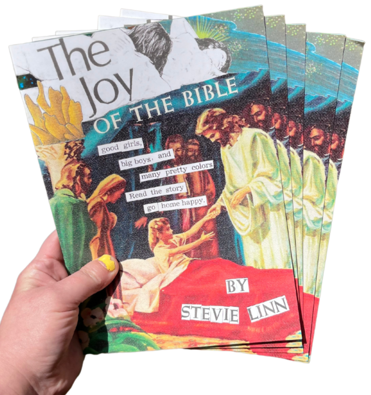 the perverted blaspheming of an illustrated children’s bible with adults fuckin’ and suckin’ their way through it. what is art if not a way to process complex trauma?6.25 x 8.75”, 12 pages$8 physical zine // $4 PDF zine