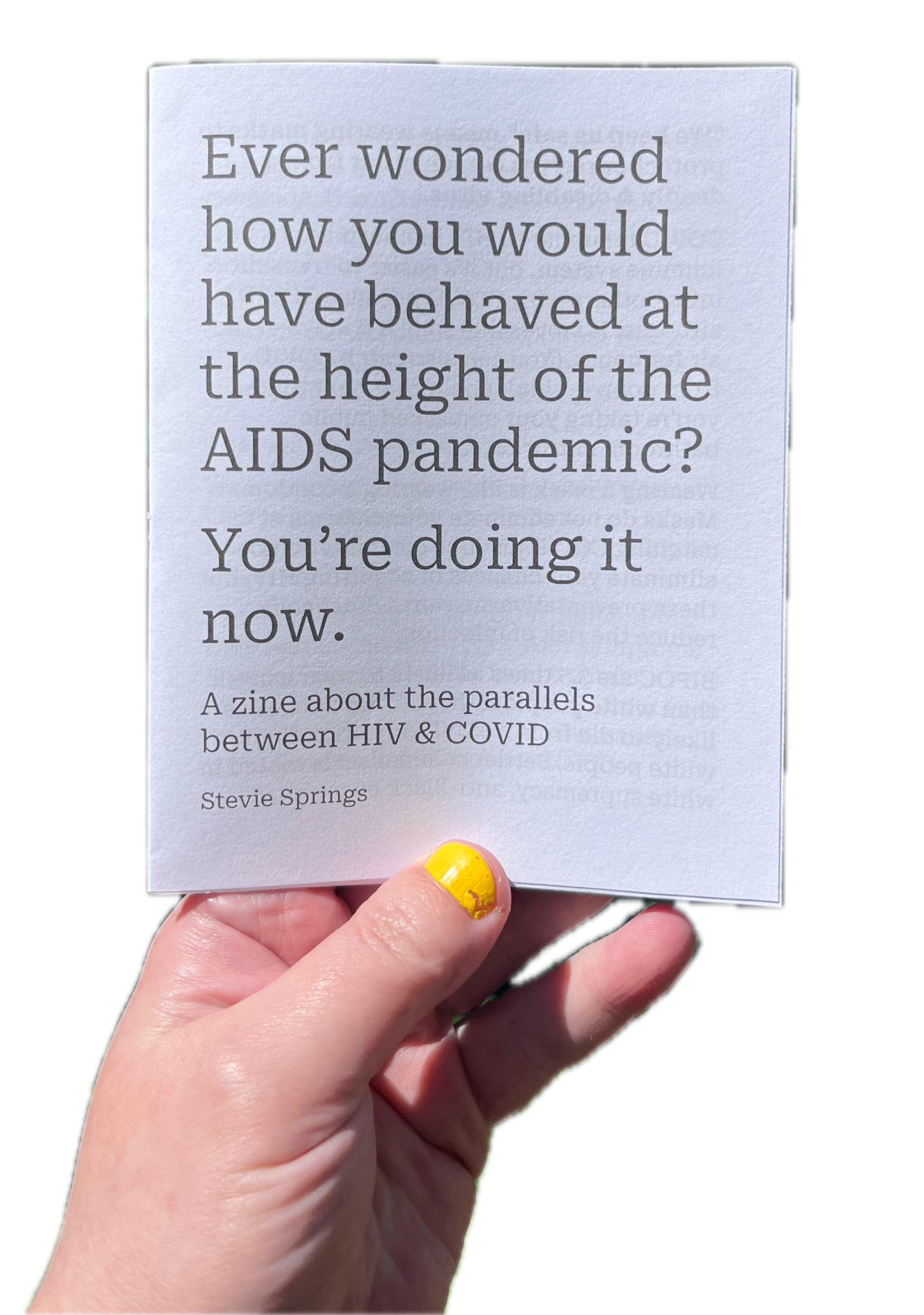 a summary of the parallels between HIV & COVIDquarter size, 8 pagesFREE PDF zine