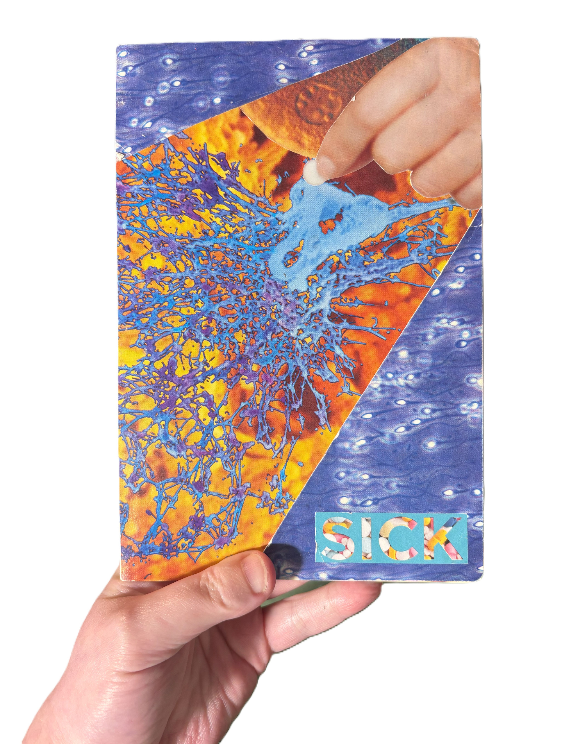a collection of collages I made in an alphabetized address book in August 2024 as I was entering a flare that ended up lasting 6 months, as my flares often do. for me, every day is a sick day.half size, 28 pages$3 PDF zine